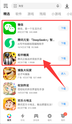 3、应用宝从全网29家应用商店收录了超200万的应用和游戏,全网最全面的应用库,随便来折腾。