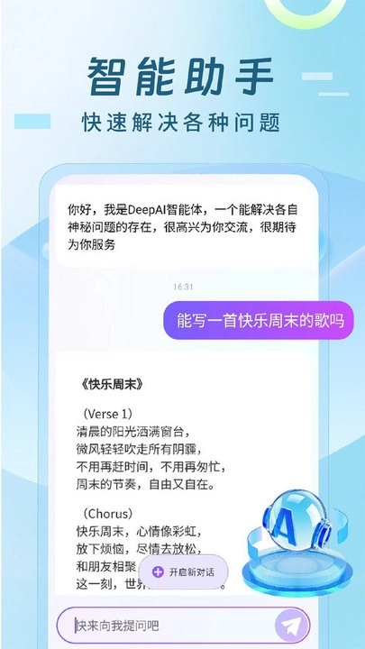 DeepAI智能体是一款融合高效、便捷与智能化特性的AI应用,依托先进人工智能技术,为用户提供全天候不间断服务。无论是天气查询、提醒设定、疑问解答还是日常对话交流,它都能快速响应,全方位满足您的多元需求。该应用致力于简化日常生活流程、提升事务处理效率,成为您身边贴心可靠的智能生活伙伴。