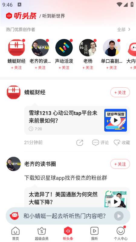 在“听头条”页面选择感兴趣的内容直接播放;
