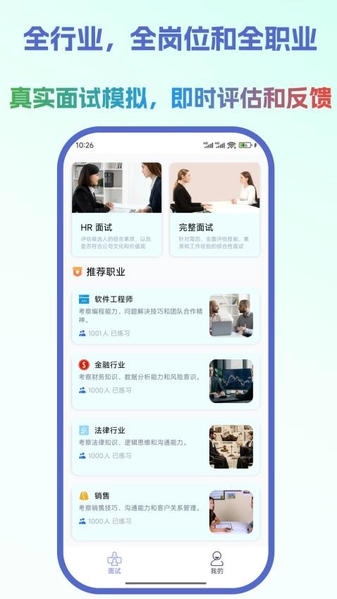 还为用户提供了线上真实的面试模拟服务,能针对全行业的面试场景进行高度还原的模拟,带来全真的体验感。