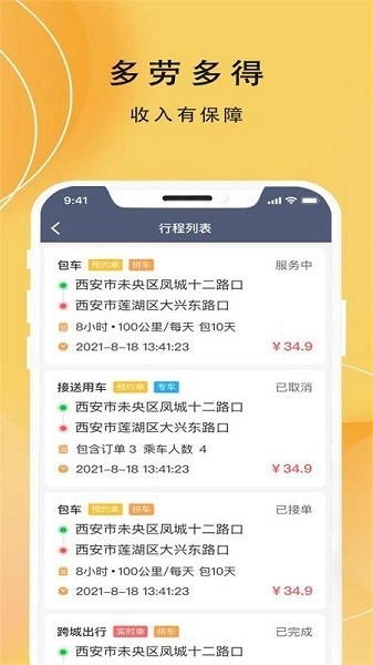 1、多元订单渠道:整合全城出行需求,构建稳定的客源基础。搭载高效接单系统,打造多接单多收益的灵活工作机制。