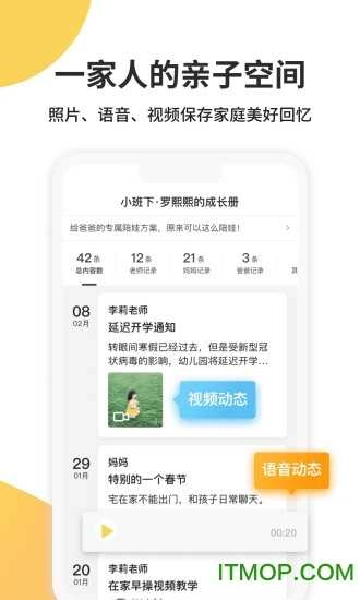 :取代低效群聊与易丢失的纸质通知,班级圈动态、在园实况、活动预告、重要通知实时同步;家人可留言互动,老师可定向反馈,沟通专注、有序、有重点。?