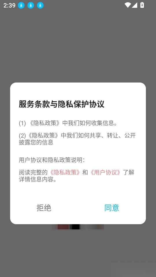 1、首先打开应用点击“同意”按钮来进入中。