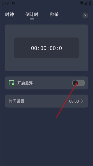 3、在倒计时界面,点击“开启悬浮”对应的开关按钮,即可启用悬浮倒计时功能。