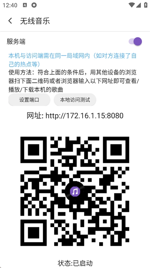 注:本机与访问端需在同一局域网内。(如对方连接了自己的热点、连接同一个wifi等)