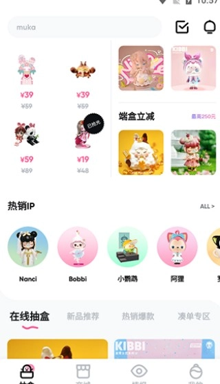 2、进入首页后,你可以浏览平台上的各类盲盒商品,要是有特别喜欢的款式,也能直接进行搜索查找。