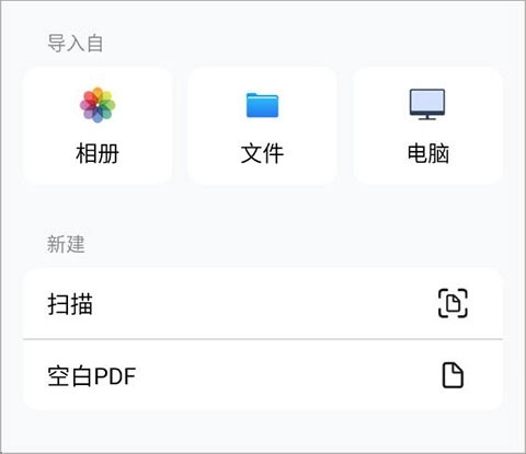 我们为您提供了多种文件导入方式,您只需点击首页或最近页面中的“+”按钮,就能从相册导入图片、通过拍摄扫描生成PDF,还可以直接从系统的文件应用导入PDF文件。