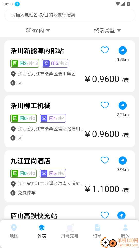 3. 进入列表页面后,可查找附近的充电站,随后点击进入下一步操作