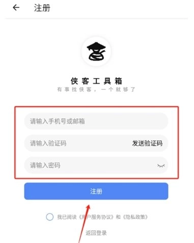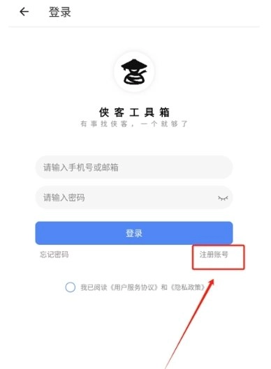 3、点击下方的注册账号侠客工具箱全功能解锁