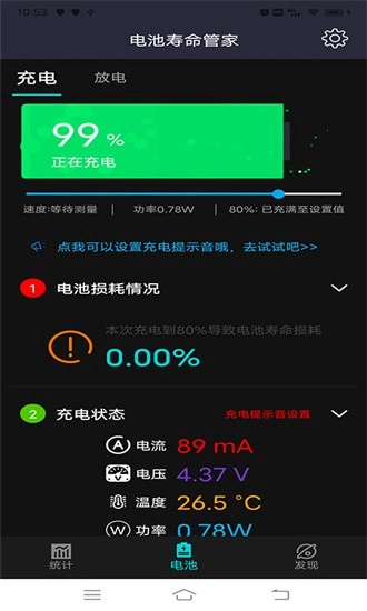 电池寿命管家旧版能适配多种机型的电池优化需求,为用户提供适配的方案选择;它可以实时监测电池的运行状态,还提供个性化充电动画与动态锁屏,供用户免费使用!