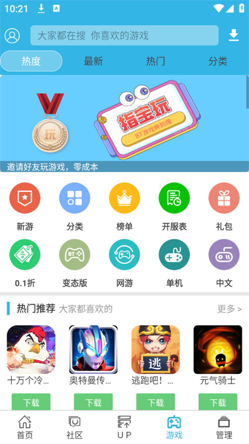 3、每日为用户更新游戏资源,同时提供实时的游戏分类排行榜。