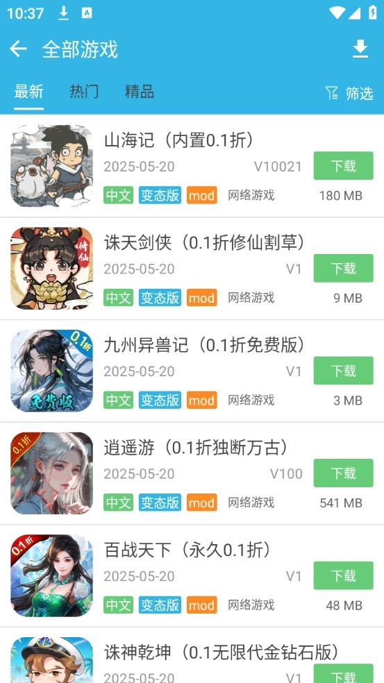 2、对不同类型的游戏加以分类,方便用户依据分类进行查看。