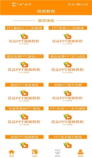 5、点击教程入口进入页面,可实时查看系统推荐的PPT教程内容,通过观看教程进行学习