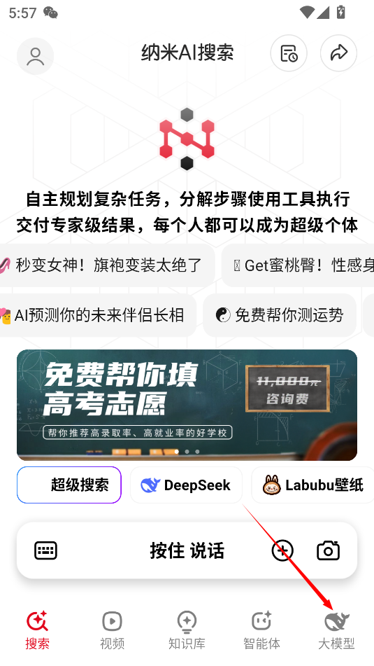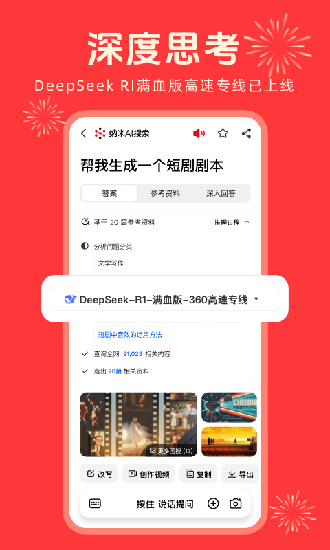 1. 除了具备搜索功能外,还可以借助AI一键生成各类富有创意的视频