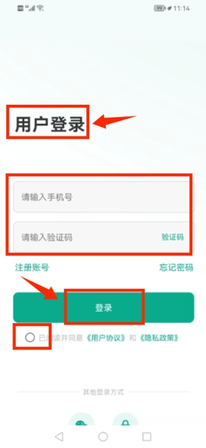 4、登录时需输入手机号与验证码,勾选相关协议后点击登录按钮即可进入。