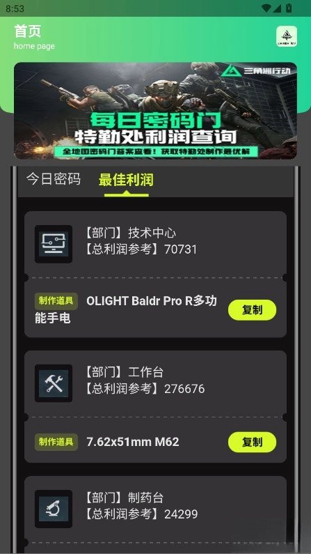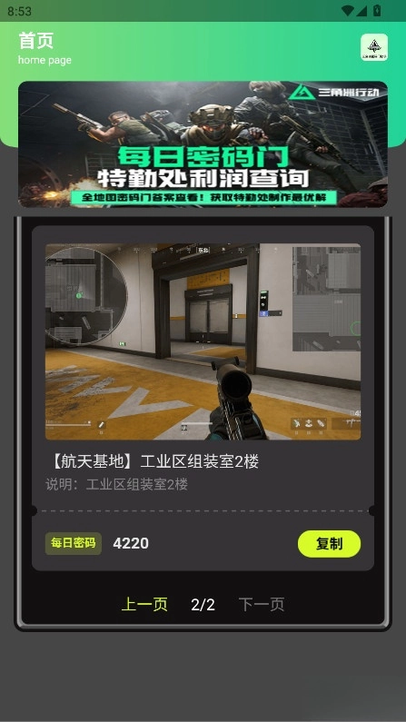 1.启动三角洲密码门助手后,就能查看每日更新的最新密码,点击复制即可。