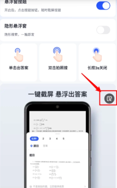 5、最后点击悬浮图标就可以开启搜题。