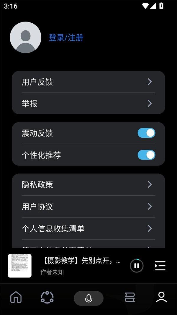 在“我的”界面底部,用户可以直接查看用户协议和隐私政策。
