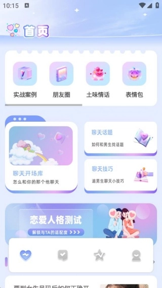 除了文案和话术服务外,平台还设有甜蜜搜索、恋爱人格测试等特色功能模块,从多个维度为用户的社交生活提供全面支持。