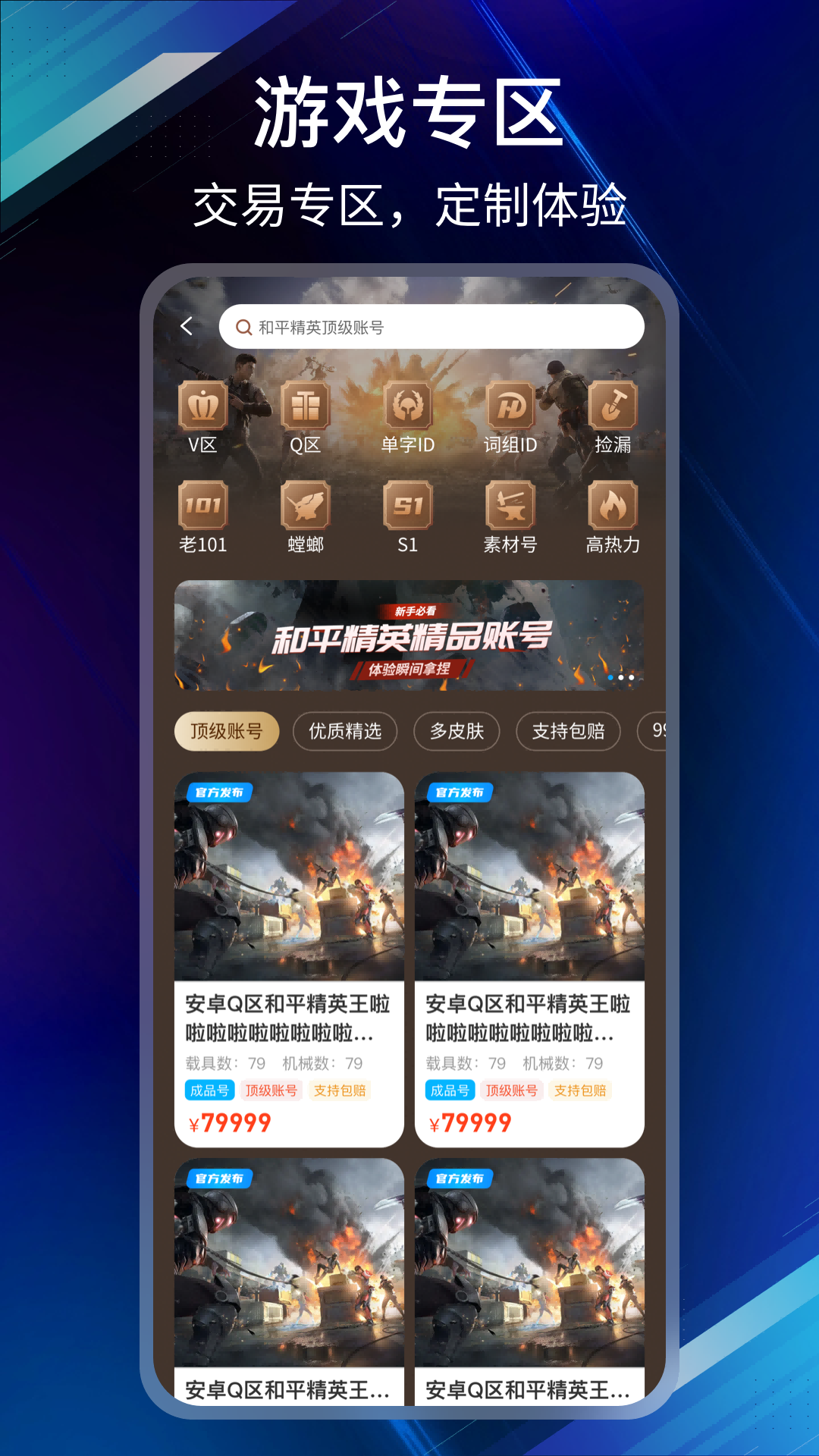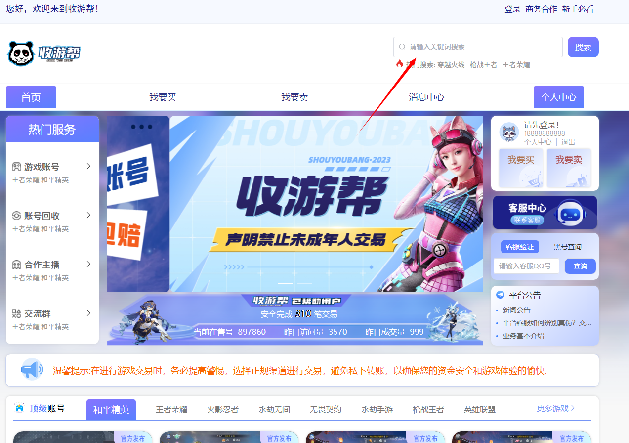 2. 进入游戏专区,你可以自由挑选心仪的游戏,进行自由交易。