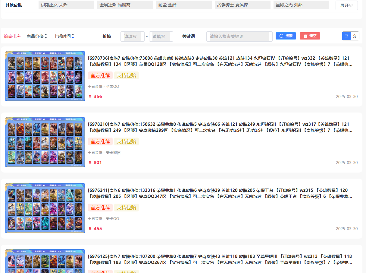 这个平台还是挺靠谱的,你可以在上面购买游戏账号,体验优质的游戏内容。这里有多种账号可供选择,能轻松找到符合你需求的各类游戏账号,有需要的用户可以放心使用。