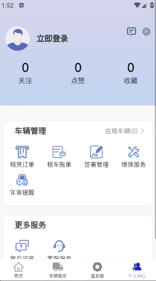 点击页面下方的“车辆服务”选项,就能看到租赁服务、租售广告、换车服务等相关功能。