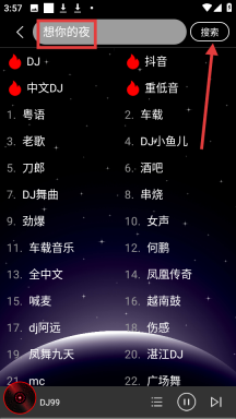 3、于搜索框内键入【想你的夜】,接着点击【搜索】按钮,从而获取搜索结果。