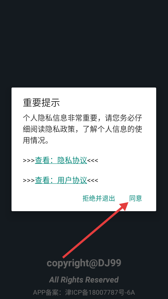 1. 于重要提示弹窗里,点击【同意】按钮,即可开启服务。
