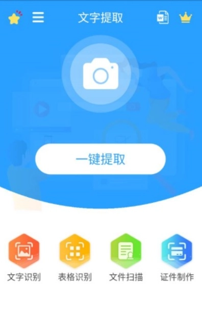 文字提取是一款实用性很强的办公工具,正如其名称所示,用户能够通过拍照或导入图片的方式提取其中的文字内容,并且可以将提取出的文字进行导出操作。该软件具备文字识别、表格识别以及文件扫描等功能,这些功能都十分实用;除此之外,软件还提供了证件制作功能,使用起来非常便捷。