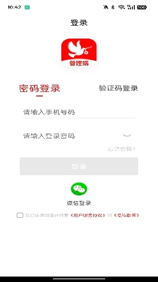 登录界面支持两种登录方式:一是通过手机号与密码组合登录,二是直接使用微信账号快捷登录。