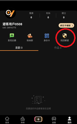 1、在当前页面找到该软件并点击进入,接着点击“我的”选项,再点击“找回账号”功能入口