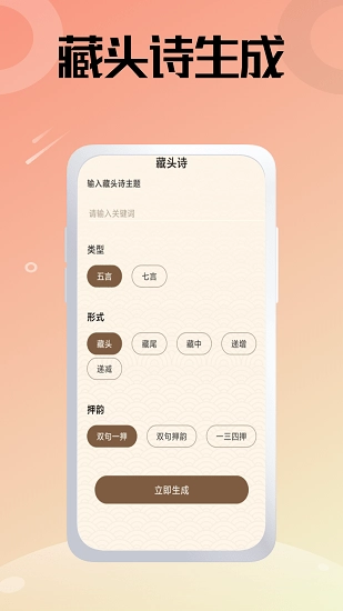 诗词大冲关手机版是一款十分实用的诗词学习工具,用户可以通过它在线查找各类经典诗词名作。平台丰富的内容资源能帮助大家拓宽知识面,深入体会诗词文化中蕴含的意境之美。趣味十足的互动玩法为用户带来全新的学习感受,此外还有便捷的藏头诗一键生成功能,感兴趣的话快来体验诗词大冲关吧。