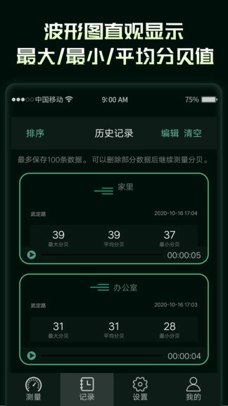 可随时播放之前保存的声音测量记录,判断测量结果
