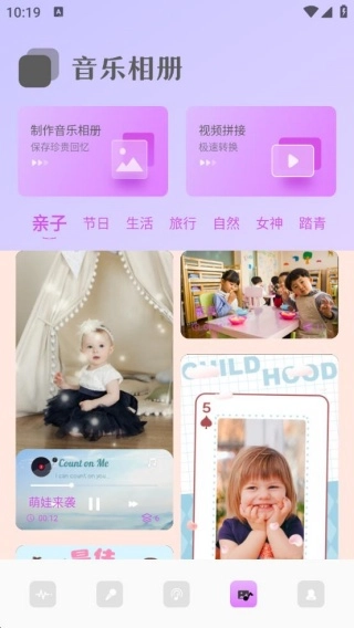 支持制作音乐相册和视频拼接,还提供多种主题模板,帮助保存珍贵回忆,制作个性化音乐相册。