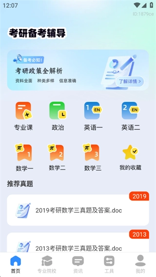 无论是考研政策的深度解读、覆盖全国的备考资料,还是各学科的历年真题、院校与专业的详细资讯,都能为用户提供精准且完备的内容支持。