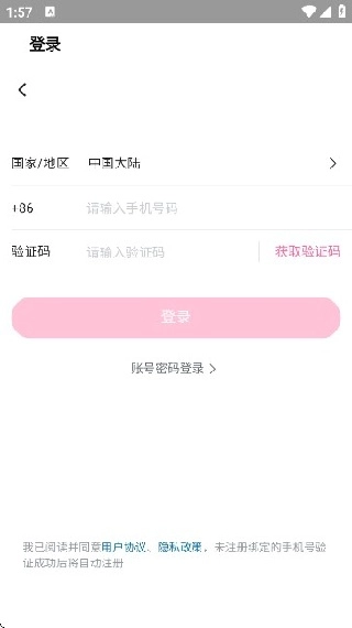在这个界面输入手机号码,获取验证码后,点击【登录】按钮就能完成登录流程。