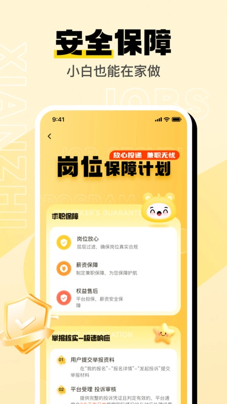 薪资保障体系健全,平台对薪资发放全程监督,使用户能够安心工作,不必有任何后顾之忧。