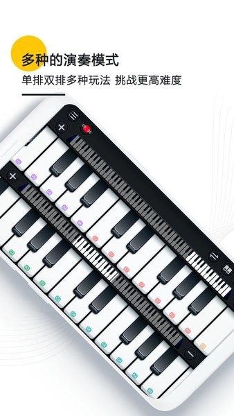 随身钢琴乐队配备完整的钢琴琴键,通过选择不同的区域就能切换各类声调,其音效高度仿真,为你带来无可比拟的真实钢琴模拟体验!