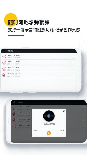 挑选一首你特别钟爱的曲子来弹奏,然后把它录制下来,存到作品库里慢慢回味,让钢琴随身乐队记录下你的成长吧!