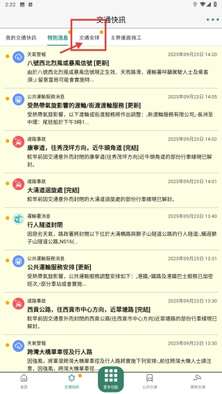 打开交通分类,点击底部的交通快讯选项,即可进入交通快讯页面。