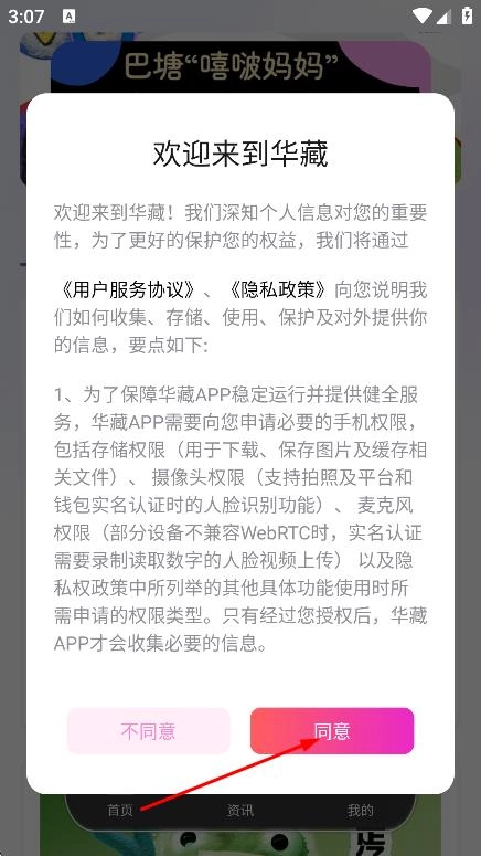 在欢迎来到华藏的弹窗中,点击同意,进入界面。
