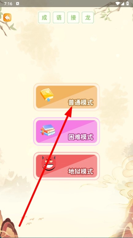 进入成语接龙模式选择页面,选择想要挑战的模式。