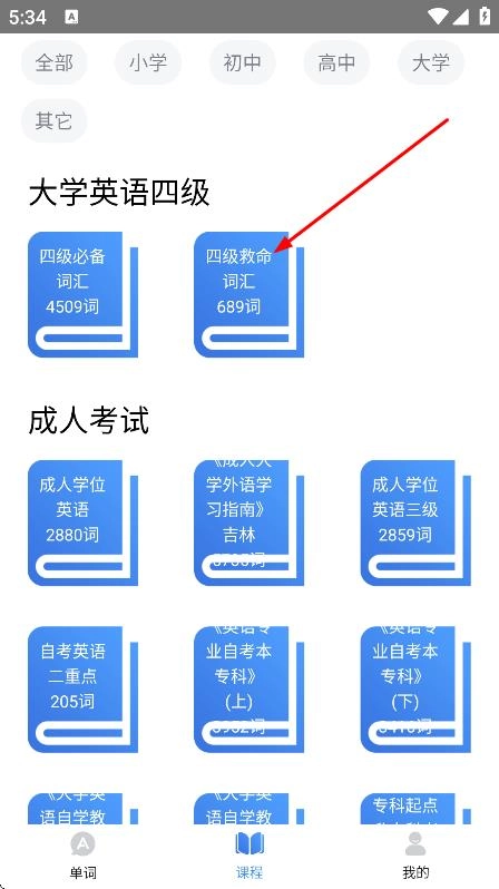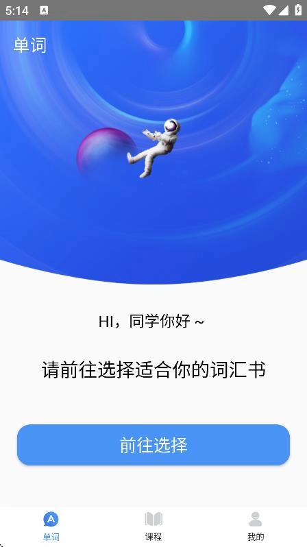 在单词页面,点击前往选择,进入词汇书选择页面。
