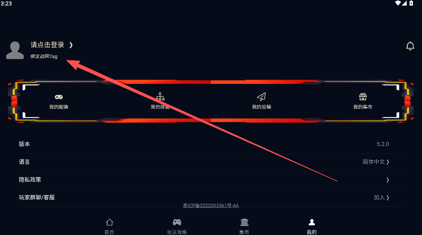 1、下载本站提供的暗黑核手机app,点击我的页面“请点击登录”。