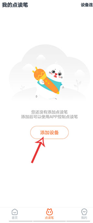 1、打开小彼恩后,在“点读笔”界面,点击添加设备