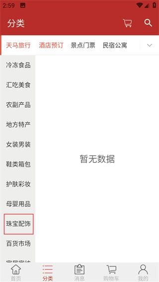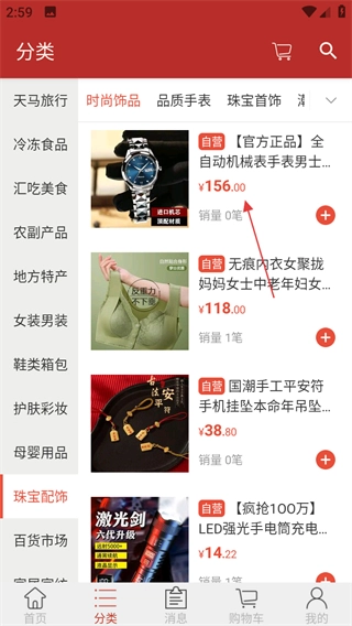 在分类页面中,点击“珠宝配饰”选项,即可进入珠宝配饰类商品的列表页面。