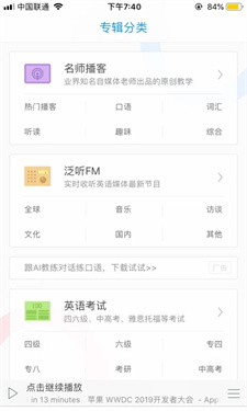 1、拥有海量且每日更新的听力资源库,独家配备智能语音精彩跟读功能。