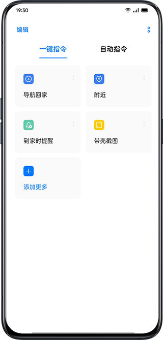打开「Breeno指令」,你可以设置「导航回家」、「附近」、「到家时提醒」、「带壳截图」等一键指令。