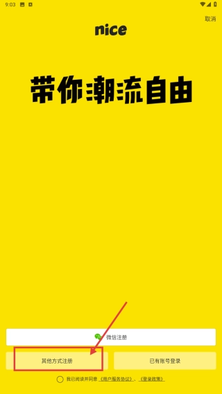 在登录注册页面,点击“其他方式注册”选项,即可展开注册方式的选择界面。
