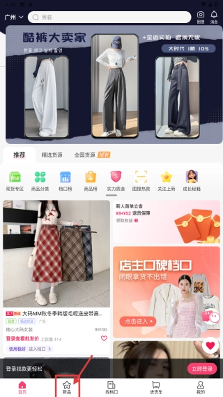 打开服装电商应用后,点击底部的“新品”选项,即可进入新品页面。